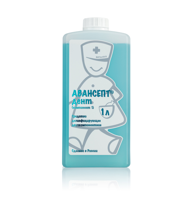 Готовое дезинфицирующие средство Авансепт Дент представляет собой прозрачную жидкость сине-зеленого цвета с запахом отдушки.
