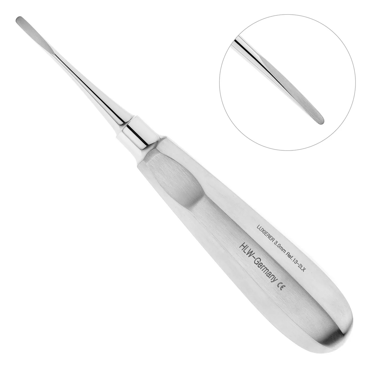 Компанией HLW Dental Instruments изготовлен люксатор с шириной рабочей части 3 мм, разработанный для атравматичного удаления корней и зубов на нижней и верхней челюсти.