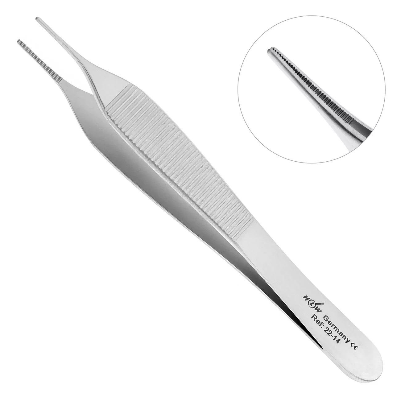 Анатомический пинцет Adson (Адсона) торговой марки HLW Dental Instruments предназначен для различных манипуляций в ротовой полости.