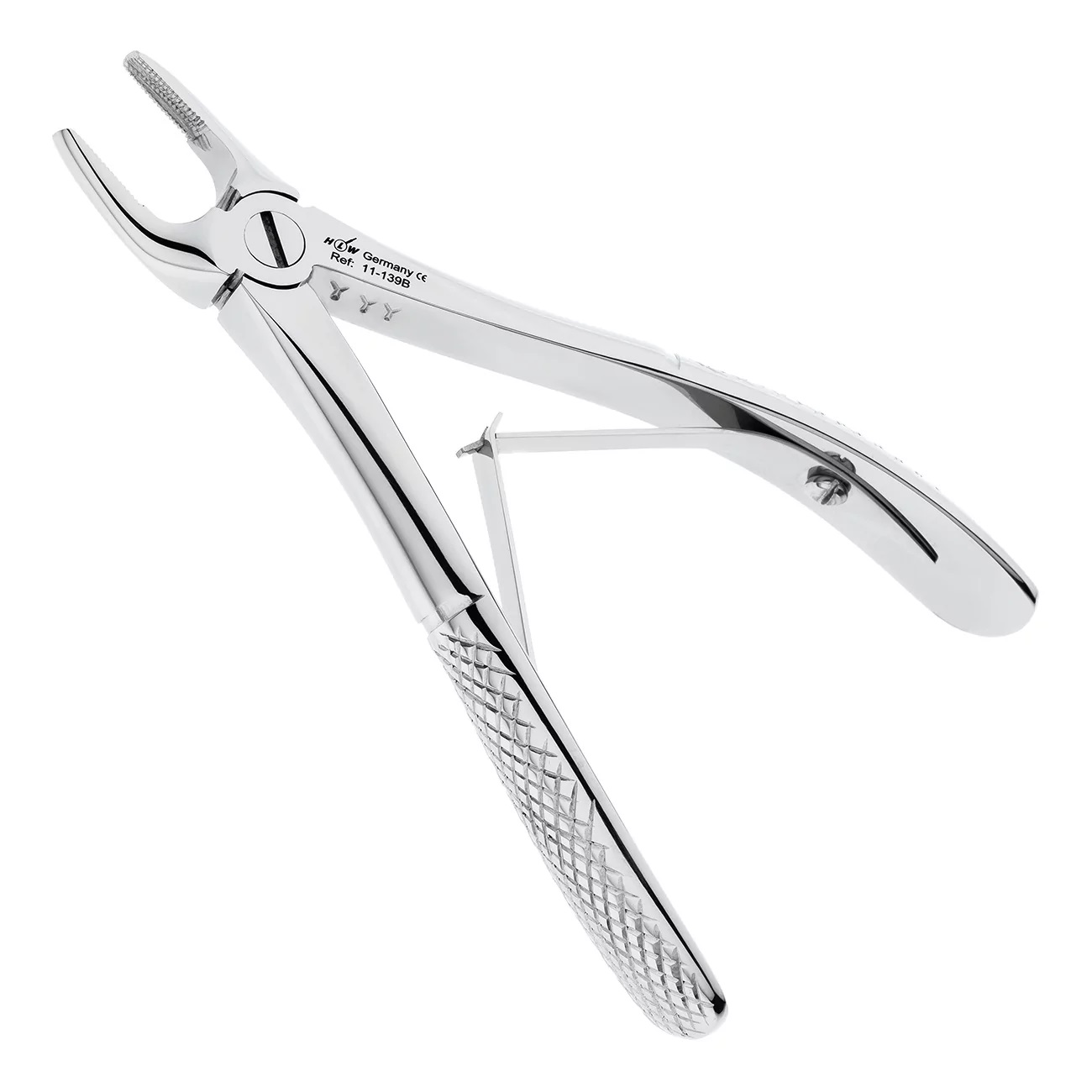 Детские щипцы формы №139В производства компании HLW Dental Instruments, изготовлены для удаления молочных премоляров верхней челюсти.