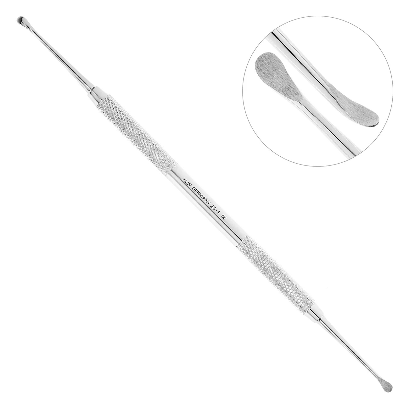 Для удаления мелких фрагментов из лунки, а также кюретажа грануляционных тканей применяется ложка кюретажная Lukas (Лукаса). Производителем инструмента является компания HLW Dental Instruments.