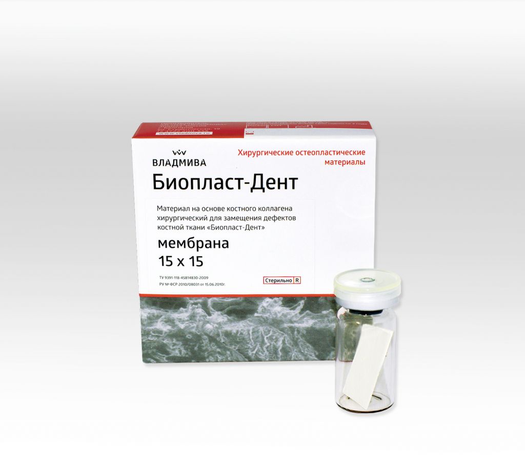 Резорбируемая двухслойная мембрана «Биопласт-Дент» представляет собой коллаген I типа (дерма), не содержит дополнительных сшивающих добавок.