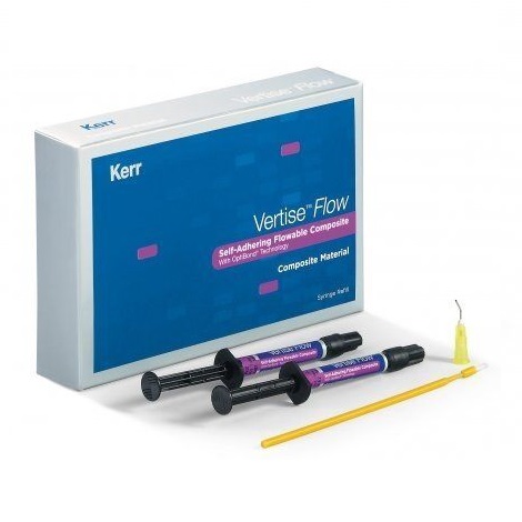 Vertise™ Flow – это самопротравливающий самоадгезивный текучий композитный материал. В составе Vertise™ Flow используется та же технология, что и в известном семействе адгезивов OptiBond™ от Kerr, благодаря чему при применении Vertise™ Flow не требуется проведение процедур протравливания / прайминга / бондинга. При этом Vertise™ Flow обеспечивает высокую силу адгезии и по прочностным характеристикам не уступает традиционным текучим композитам.