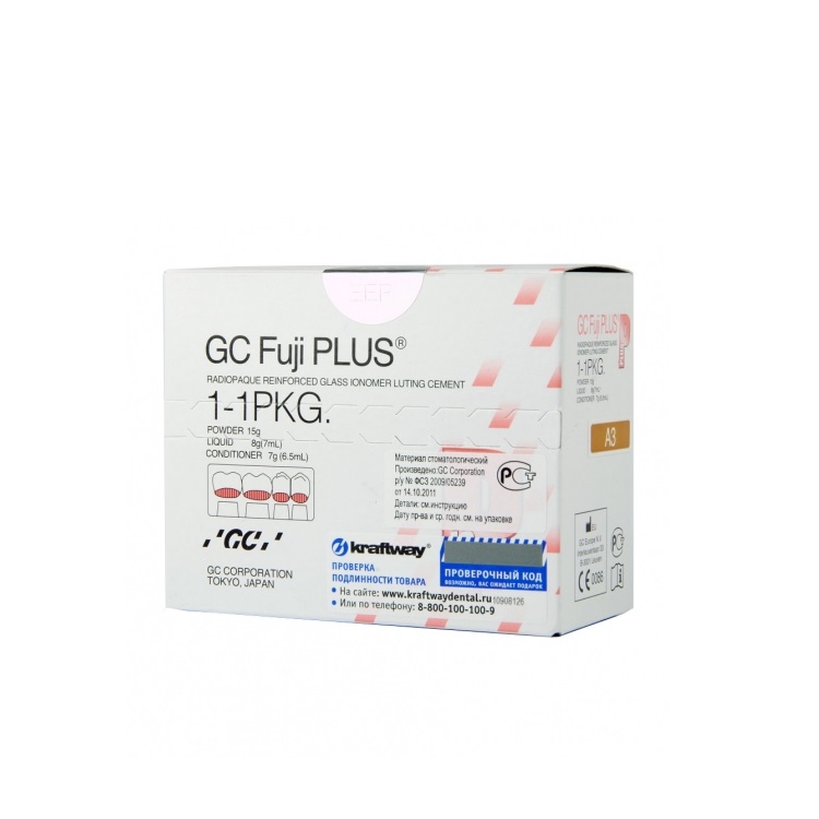 Фуджи Плюс\ Fuji PLUS А3 - cтеклоиномерный цемент (15 гр. порошка, жидкость 6.5 мл. и 7 мл.) GC