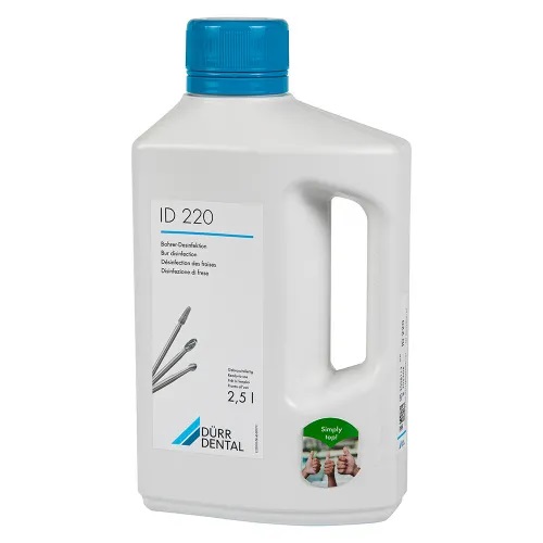 ID 220 Drill bat - не содержащий альдегидов раствор, ванна для боров, для одновременной дезинфекции и очистки вращающихся инструментов во фрезаторе (15 мин.) или ультразвуковом аппарате (5 мин.).