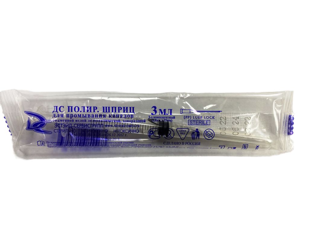 Шприц эндодонтический стерильный 3 мл (шт) 27G*1, 1/4, 04*32 мм ДС ПОЛИР