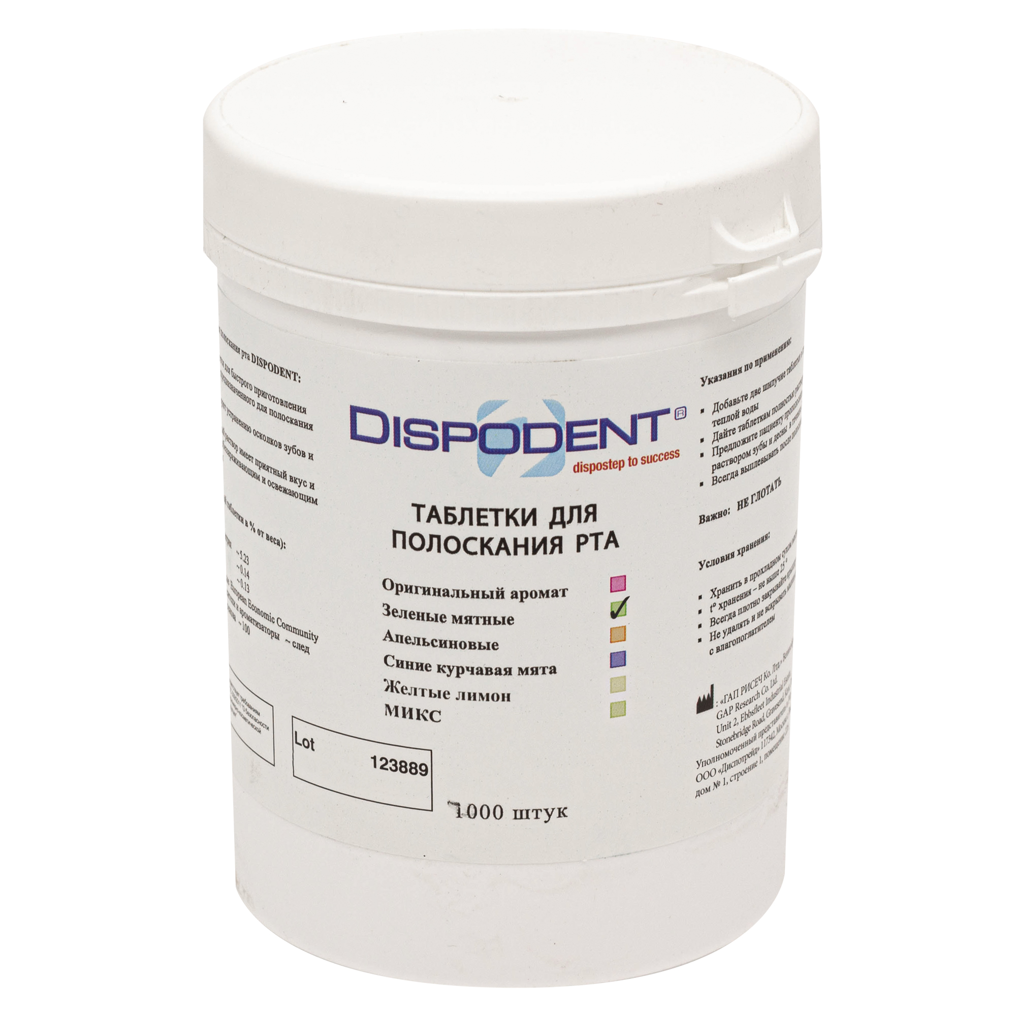 Таблетки для полоскания антисептические (мята,зеленые), 1000 шт Dispodent