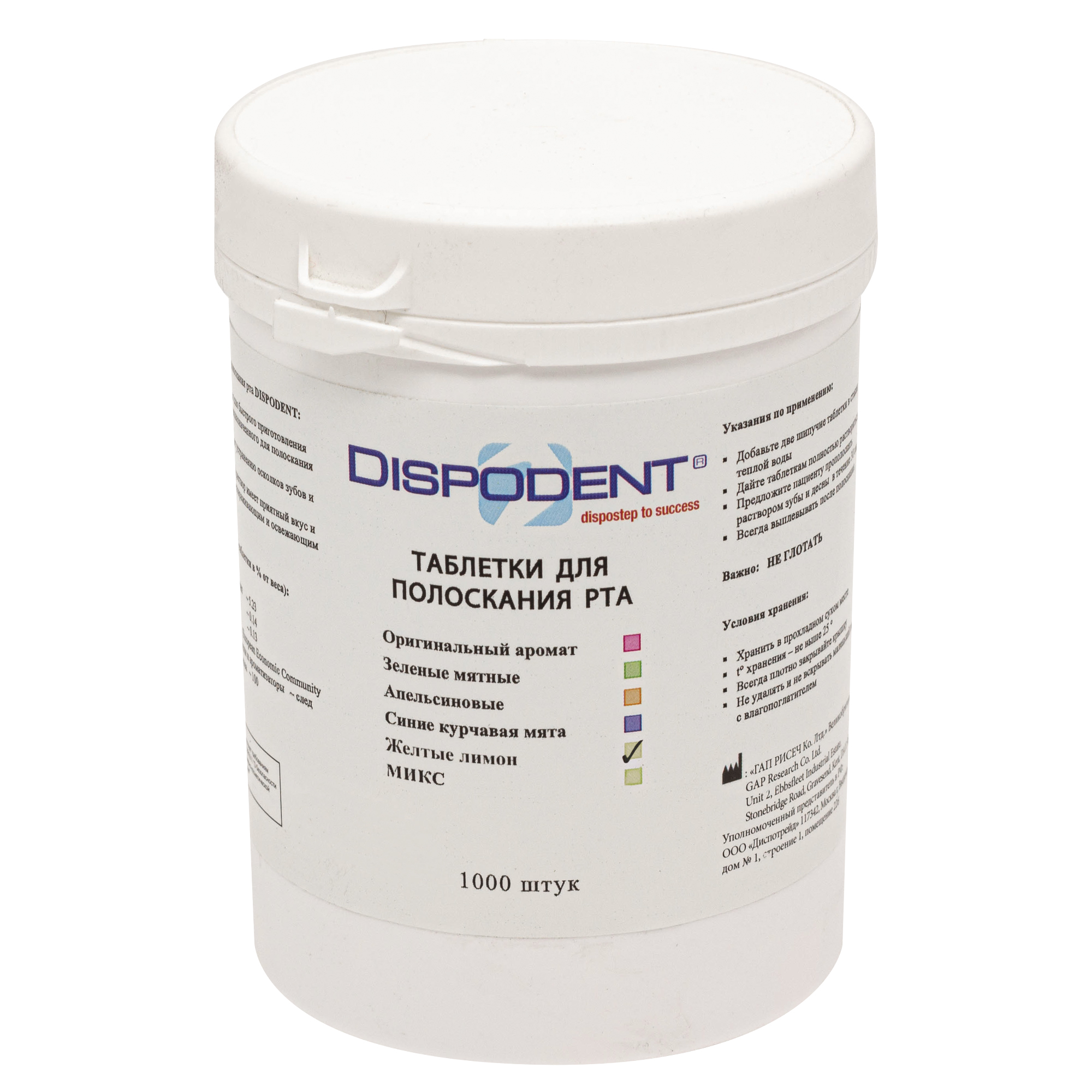 Таблетки для полоскания антисептические (лимон), 1000 шт Dispodent