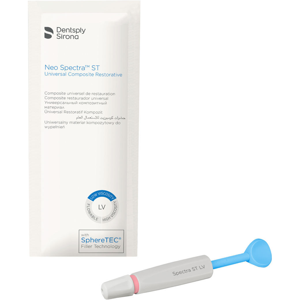 Благодаря технологии наполнителя SphereTEC композитный материал Neo Spectra ST обладает улучшенными манипуляционными свойствами и предлагает 2 варианта вязкости: низкую (LV – low viscosity) и высокую (HV – high viscosity) вязкость, что позволяет ему соответствовать вашим предпочтениям и технике нанесения для эффективного и простого использования. Сферический наполнитель SphereTEC обеспечивает композиту Neo Spectra ST эффект хамелеона для более простого подбора цвета. Также он обеспечивает быструю финишную обработку и полировку для идеального блеска.