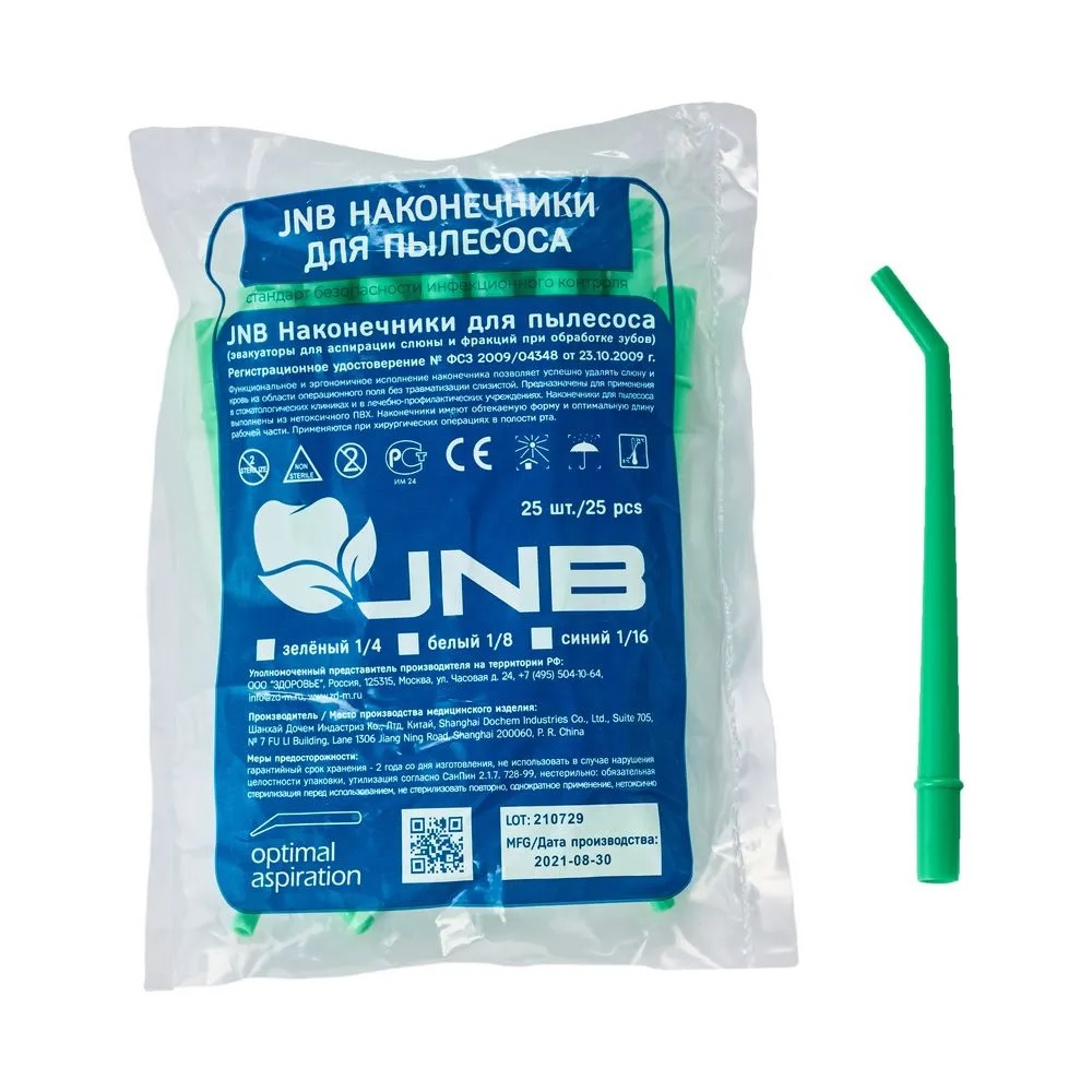 JNB Наконечники хирургические для пылесоса, диаметр 1/4, цвет зеленый.